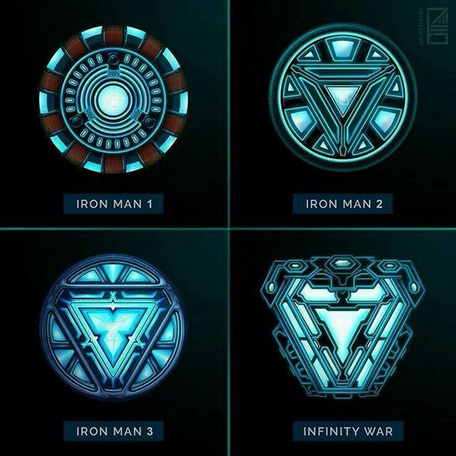 Iron Man zırhı, uçuş kabiliyeti, enerji silahları ve yapay zekâ sistemleri ile donatılmıştır. Zaman içinde farklı modellerle geliştirilen zırhlar arasında Mark I’den Bleeding Edge Armor’a kadar çok sayıda varyant bulunmaktadır. Ark Reaktörü gelişimi görseldeki gibidir.