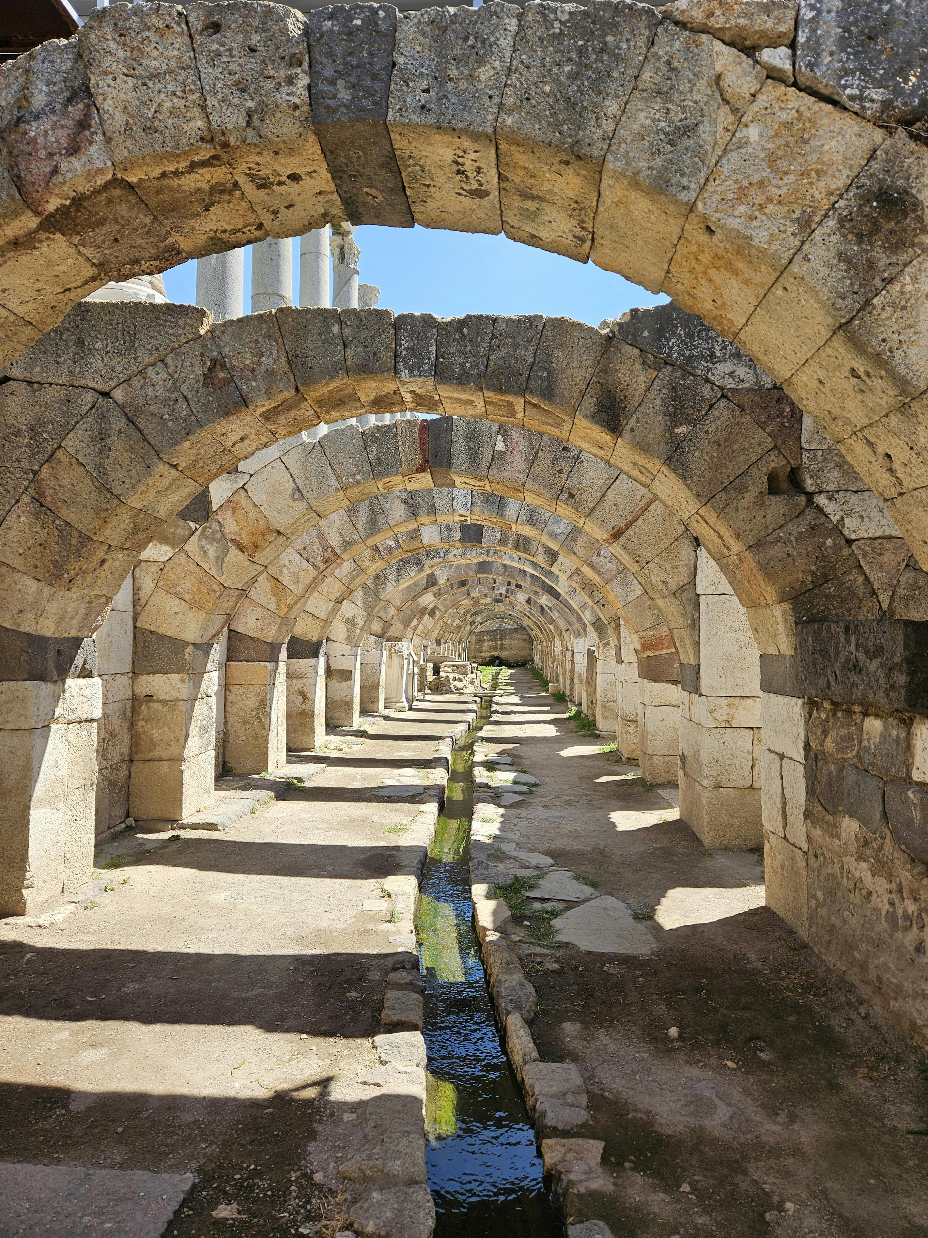 - Bazilika (Kuzey Galeri): Kamu işlemleri ve ticari faaliyetlerin gerçekleştiği bazilika, sütunlu mimarisi ile dikkat çekmektedir. Yapı, Roma döneminde büyük bir yenilemeden geçmiş ve çok katlı bir form kazanmıştır.