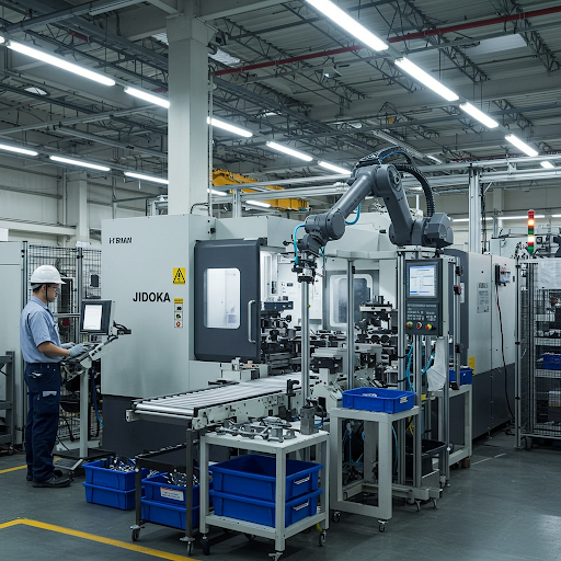 Jidoka Entegreli Üretim Sistemi (Yapay Zeka Tarafından Oluşturulmuştur)