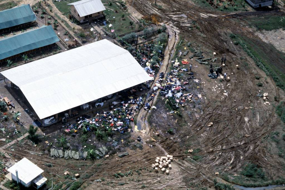 Toplu İntiharın Ardından Toplanma Alanında Bulunan Cesetlerin Kuşbakışı Görünümü (NARA)