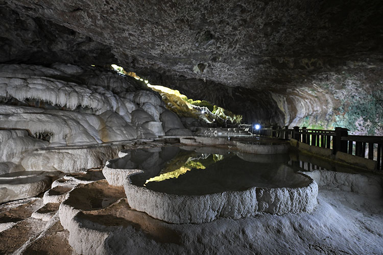 Mağara, sarkıt ve dikitlerle süslenmiş olup, içinde traverten basamakları ile dikkat çekmektedir. Pamukkale’deki traverten oluşumlarına benzer nitelikler taşıdığı için “Küçük Pamukkale” veya “Mağara Pamukkale” olarak da adlandırılmaktadır. Mağaranın iç sıcaklığı 24-32 °C arasında değişmekte, sabit ve nemli bir mikroklima özelliği göstermektedir.
