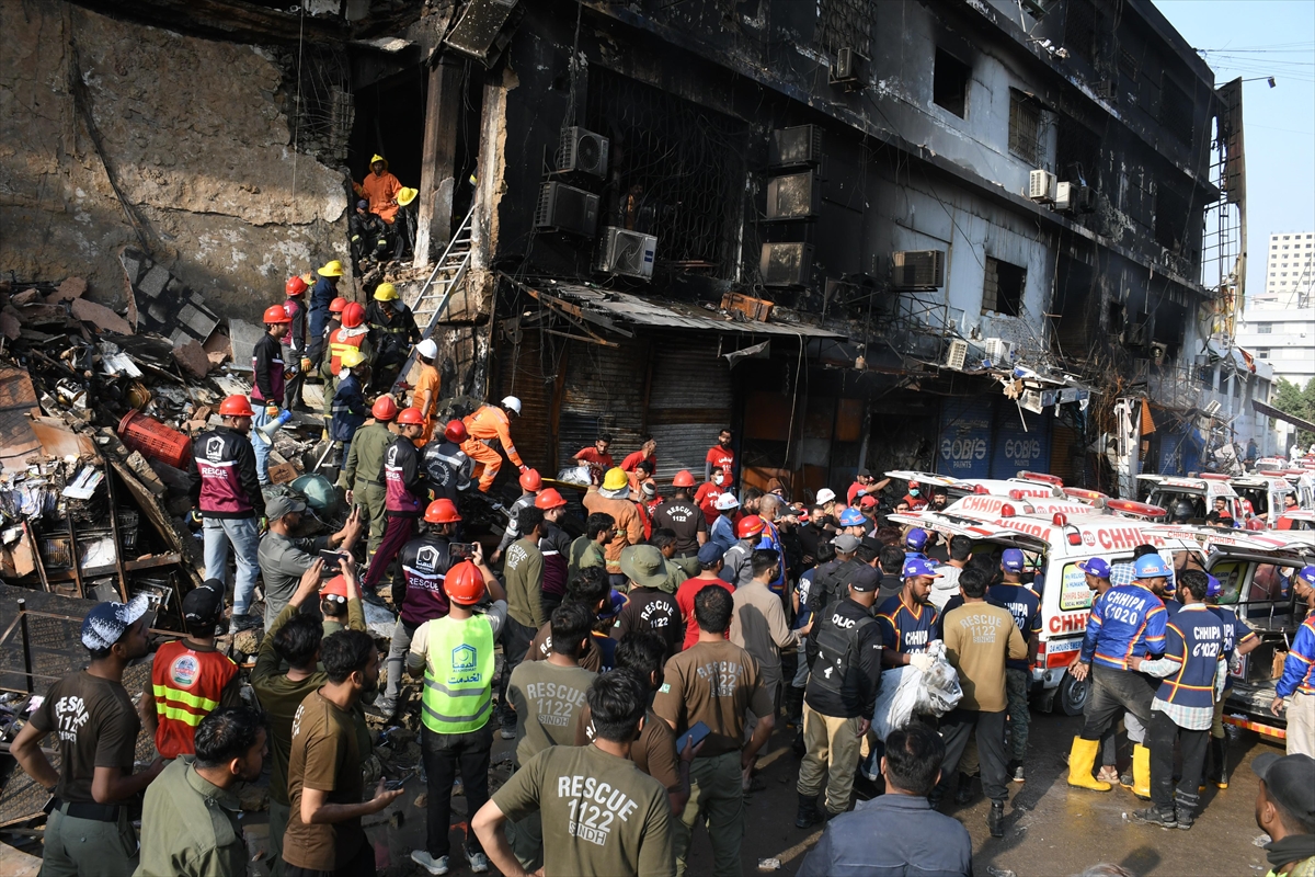 Pakistan'ın Karaçi kentindeki alışveriş merkezinde çıkan yangın, 18 Ocak 2026 - (Anadolu Ajansı)
