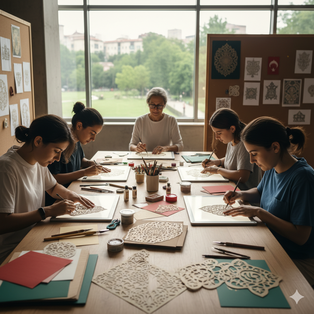 Katı' Sanatını İcra Eden Kursiyerler (Yapay Zeka ile Oluşturulmuştur.)