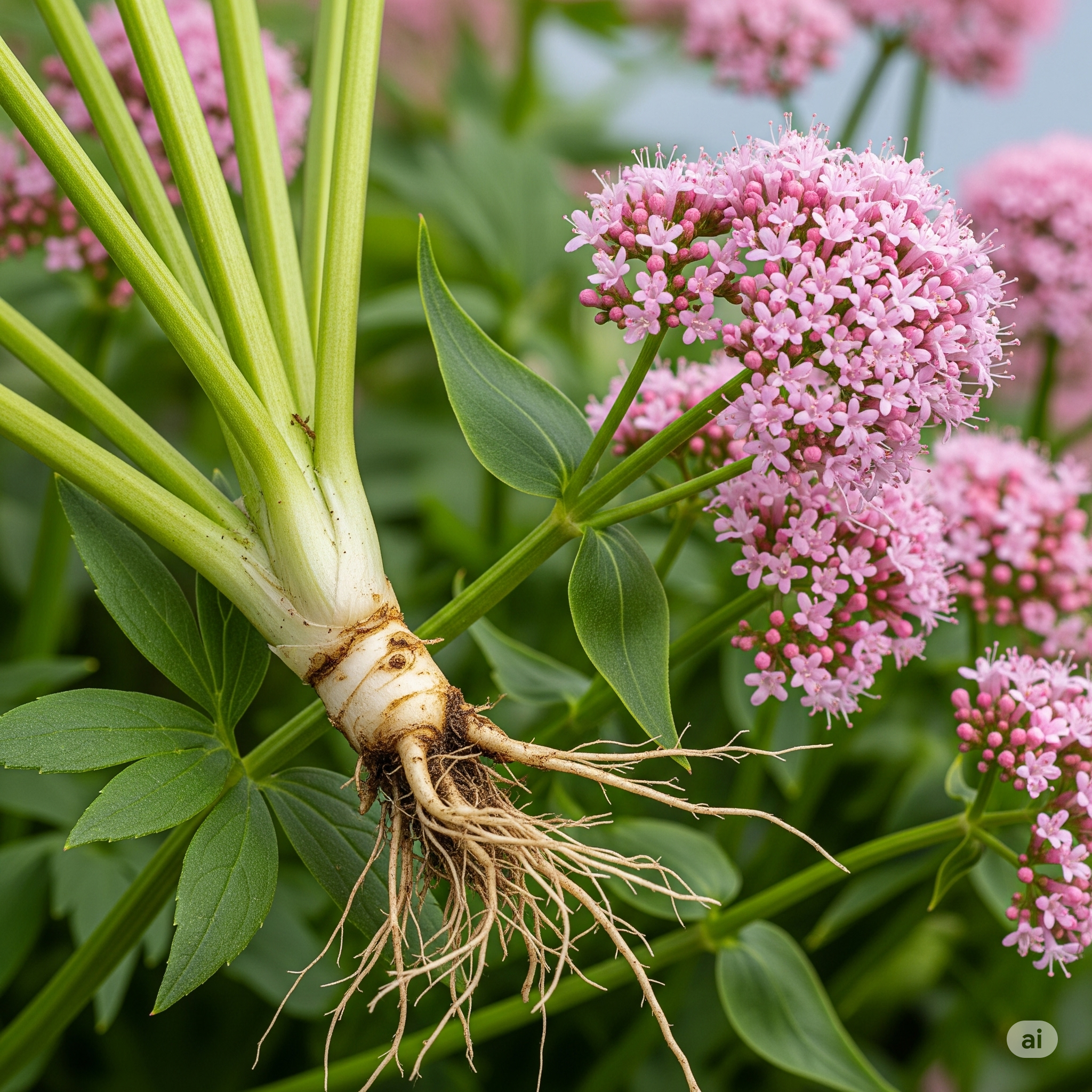 Valeriana officinalis rizom ve kökleri; uçucu yağlar, iridoitler (valepotriatlar, valeroksidat), alkaloitler (aktinidin, katinin, valerianin), amino asitler (GABA, arjinin vb.), polifenoller (klorojenik ve kafeik asit), tanenler, zamk ve reçine içermektedir. Ticari kültürlerde valerenik asit türevleri ve valepotriatlar belirli oranlarda tespit edilmiştir. Valepotriatlar zamanla bozunarak baldrinal ve homobaldrinal'e dönüşmektedir.