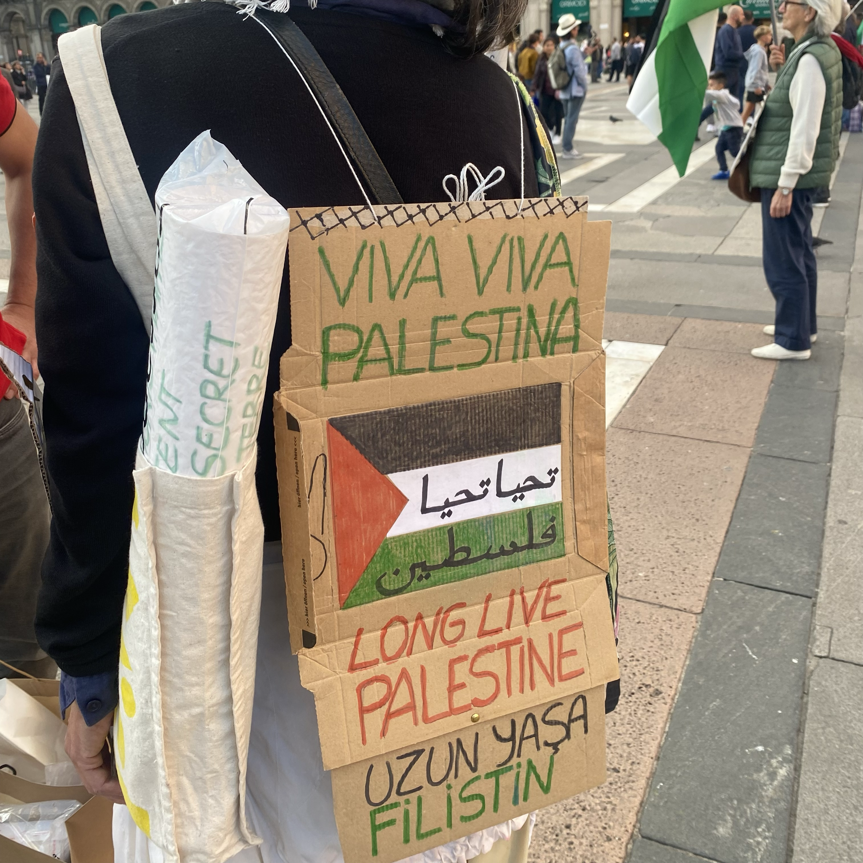 Tam gitmeye hazırlanırken yine bir ODTÜ'lü olan Kevser ile karşılaştık. Kısa bir sohbetimiz oldu. O sırada meydanda sıra dışı bir şey olmaya başladı: Bir grup insan aniden toplandı ve Filistin bayraklarıyla gösteri başlattı. Her yerde bayrak görmeme rağmen İtalya'da ilk kez bir gösteriyle karşılaşıyordum. Bu durum beni derinden etkiledi. Ellerinde bayraklar ve altı farklı dilde (Türkçe de dâhil) yazılmış pankartlar taşıyan bu iyi niyetli insanlarla konuşmaya gittim. Çoğu İtalyan'dı. İngilizce bilenlerle sohbet ettim ve içlerindeki umut beni sevindirdi. Gerçekten siyasi bir çıkar için değil, insanlık için oradaydılar. Aralarından biri, "Her akşam saat 18.00'den 22.00'ye kadar buradayız," dedi. Saatlerce ayakta beklediler. Ben de sohbet edip onları izledim. Biri Filistin bayrağını alıp yüksekteki bir kafenin balkonundan dalgalandırdı ve "Özgürlük! Özgürlük!" diye bağırmaya başladı. Meydandakiler de ona karşılık verdi. Bu sahne beni çok duygulandırdı. Basit ve sıradan bir an değildi. Ayrılmayı düşündüğüm Milano'da, günün kötü geçmemesi adına adeta bir teselli olmuştu bu olay. Orada, ailesi hâlâ Gazze'de olan ve İtalya'da çalışan bir baba ile tanıştım. O da göstericilerden biriyle konuşuyordu. Onlarla da sohbet ettim. Her şeye rağmen içlerinde mükemmel bir teslimiyet ve olayların iyi sonlanacağına dair sarsılmaz bir umut vardı. Yüzlerindeki ifadeyi hâlâ hatırlıyorum. Yarım saat kadar ayakta konuştuk. Gelen herkes, ekiple fotoğraf çekiliyordu. Bu, sessiz bir eylemdi. Herkes ayakta, Filistin bayraklarını ve yazı dolu kâğıtları tutmuş; katedrale girmek veya fotoğraf çekmek için koşturan insanları izliyor, onlara bir mesaj iletmek istiyorlardı. Floransa bileti bakmayı bile unutmuştum, sadece o anı derinlemesine yaşıyordum.