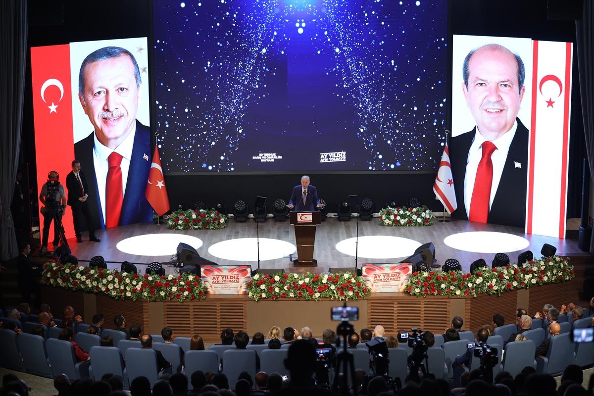 Cumhurbaşkanı Recep Tayyip Erdoğan, Kuzey Kıbrıs Türk Cumhuriyeti (KKTC) Dr. Fazıl Küçük Bulvarı'nda düzenlenen 20 Temmuz Barış ve Özgürlük Bayramı Töreni”nde, 20 Temmuz 2025 - (Anadolu Ajansı)
