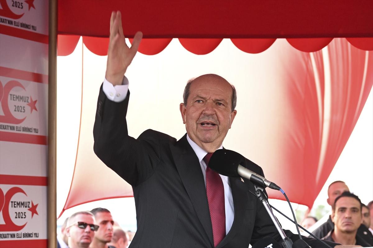 Cumhurbaşkanı Ersin Tatar, Kıbrıs Barış Harekatı'nın 51. yıl dönümü dolayısıyla Dr. Fazıl Küçük Bulvarı'nda düzenlenen 20 Temmuz Barış ve Özgürlük Bayramı Töreni'nde, 20 Temmuz 2025 - (Anadolu Ajansı)