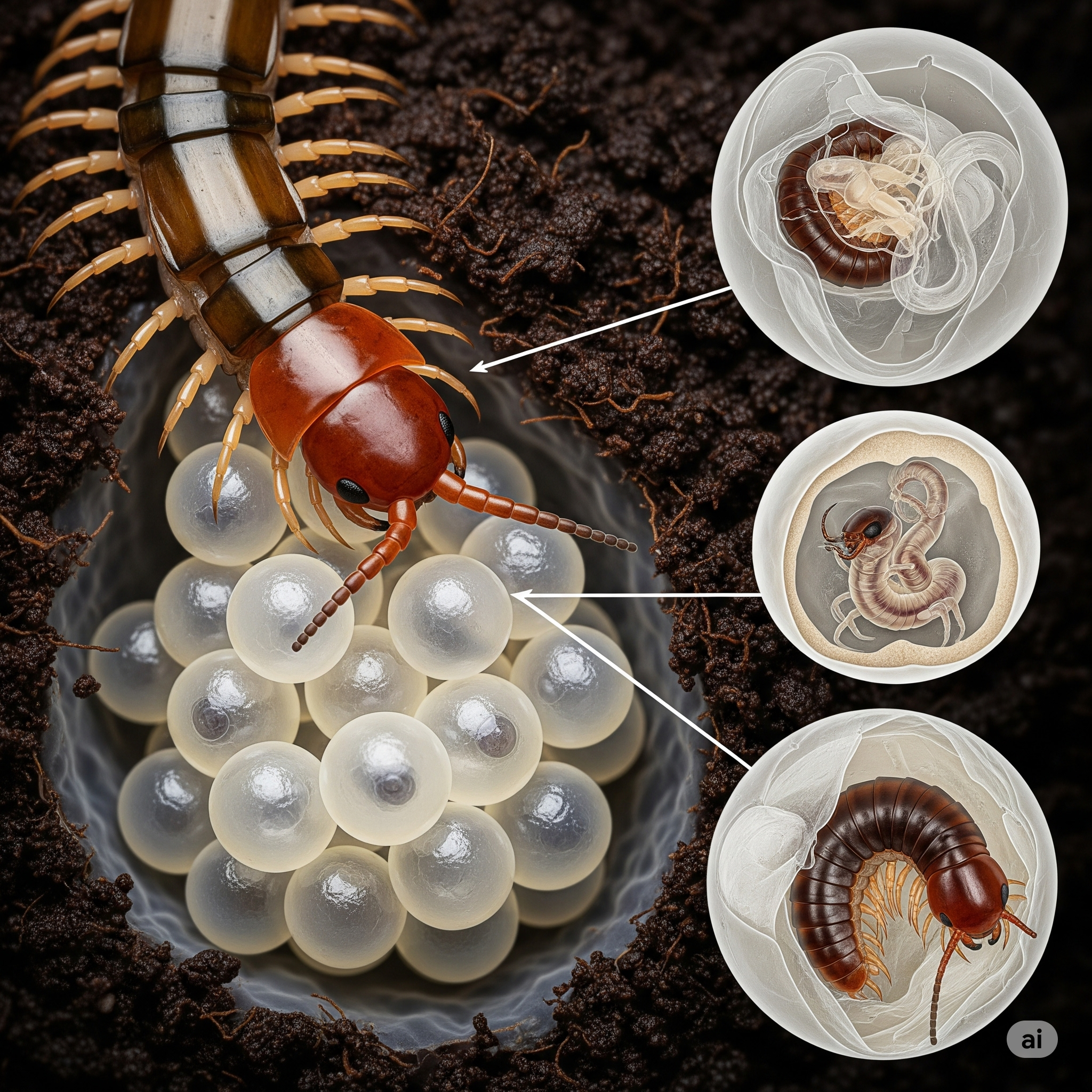 Kırkayaklarda cinsel dimorfizm gözlemlenir. Erkek bireylerde, bazı bacak çiftleri gonopod adı verilen üreme organlarına dönüşmüştür. Bu yapılar, spermatoforun dişiye iletilmesini sağlar. Dişi, döllenmiş yumurtaları nemli ortamlara bırakır. Gelişim süreci anamorfoz olarak adlandırılır; birey her kabuk değişiminde yeni segment ve bacak çiftleri kazanarak erginliğe ulaşır. Gelişim süresi çevresel faktörlere bağlı olarak birkaç yıl sürebilir.