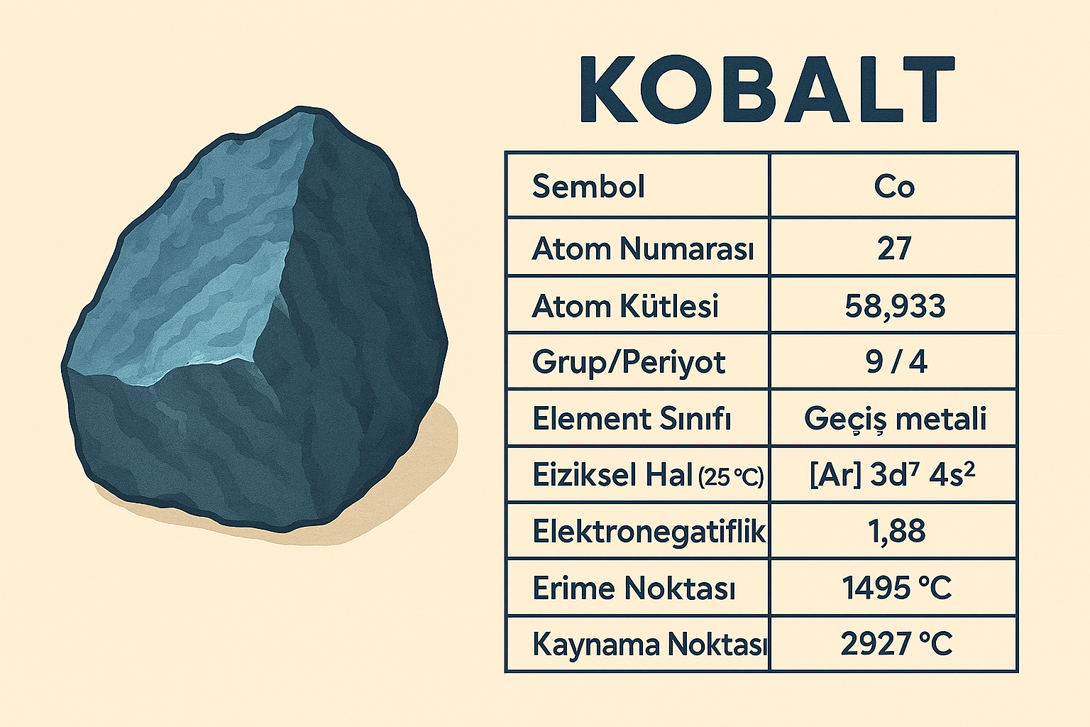 Kobalt, periyodik tablonun 4. periyodunun 9. grubunda yer alan, atom numarası 27 olan bir geçiş metalidir. Tarihsel olarak cam ve seramiklerde mavi pigment olarak kullanılan bu element, günümüzde enerji teknolojilerinden biyomedikal uygulamalara kadar geniş bir yelpazede değerlendirilmektedir. Fiziksel dayanıklılığı, manyetik özellikleri ve biyolojik işlevleri nedeniyle hem endüstriyel hem de bilimsel açıdan stratejik bir konuma sahiptir.