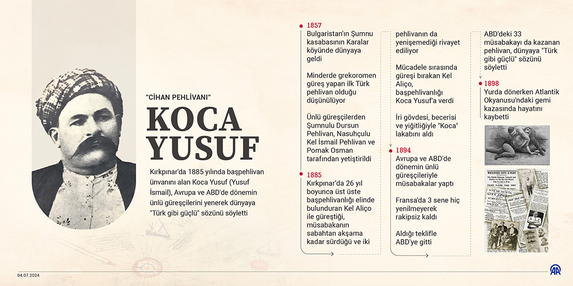 Koca Yusuf'un hayatına dair kronolojik hazırlanmış bilgi kartı. (AA)