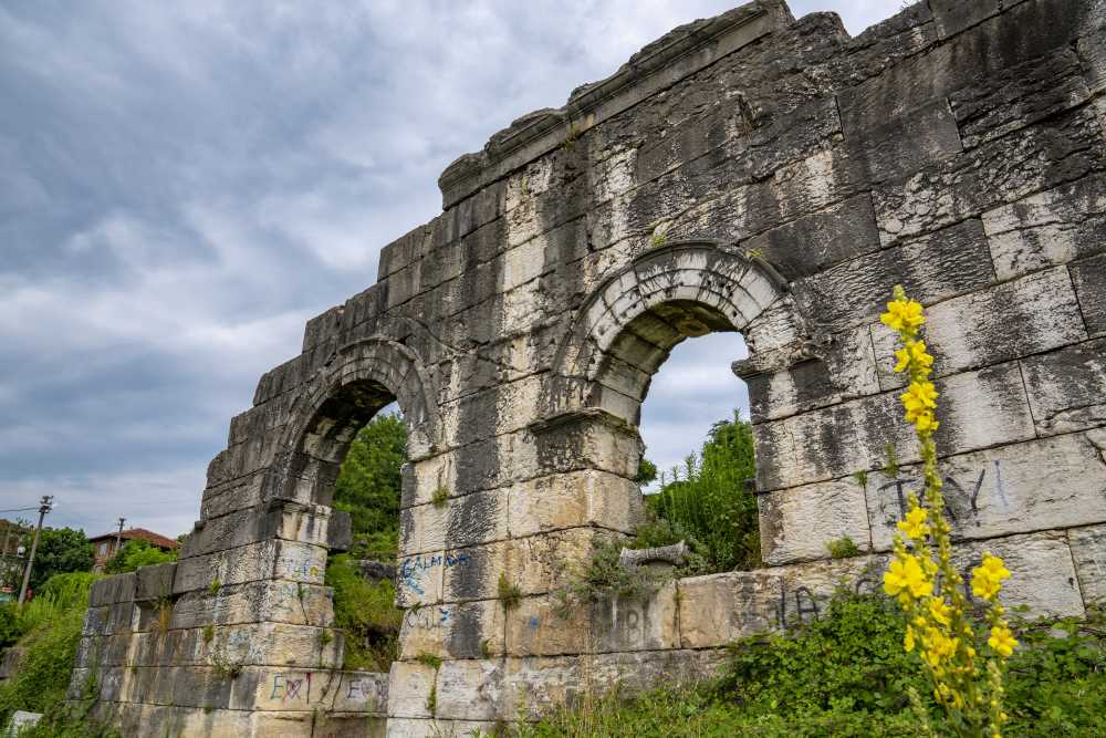 Kemerkasım Su Kemerleri ise Roma döneminden kalma bir su taşıma sistemine aittir. Bu yapılar, antik kentin su ihtiyacını karşılamak üzere inşa edilmiş olup, Kozluk (Dokuzpınarlar) kaynağından gelen suyu Konuralp'e ulaştırmak amacını taşımaktaydı. Ayakta kalan kemerli yapılar, dönemin mühendislik birikiminin önemli bir göstergesidir.