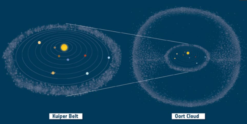 Kuiper Kuşağı ve tahmini olarak Oort Bulutunun konumu [1]