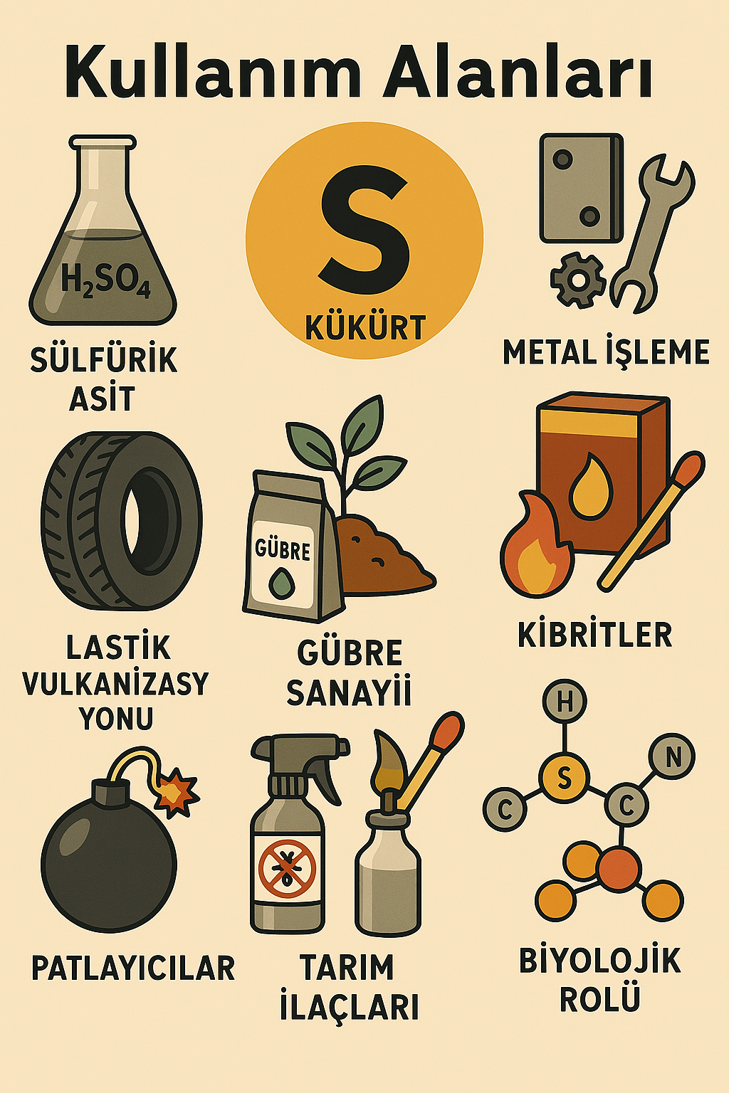 Kükürt Elementinin Kullanım Alanları (Yapay Zeka İle Oluşturulmuştur.)