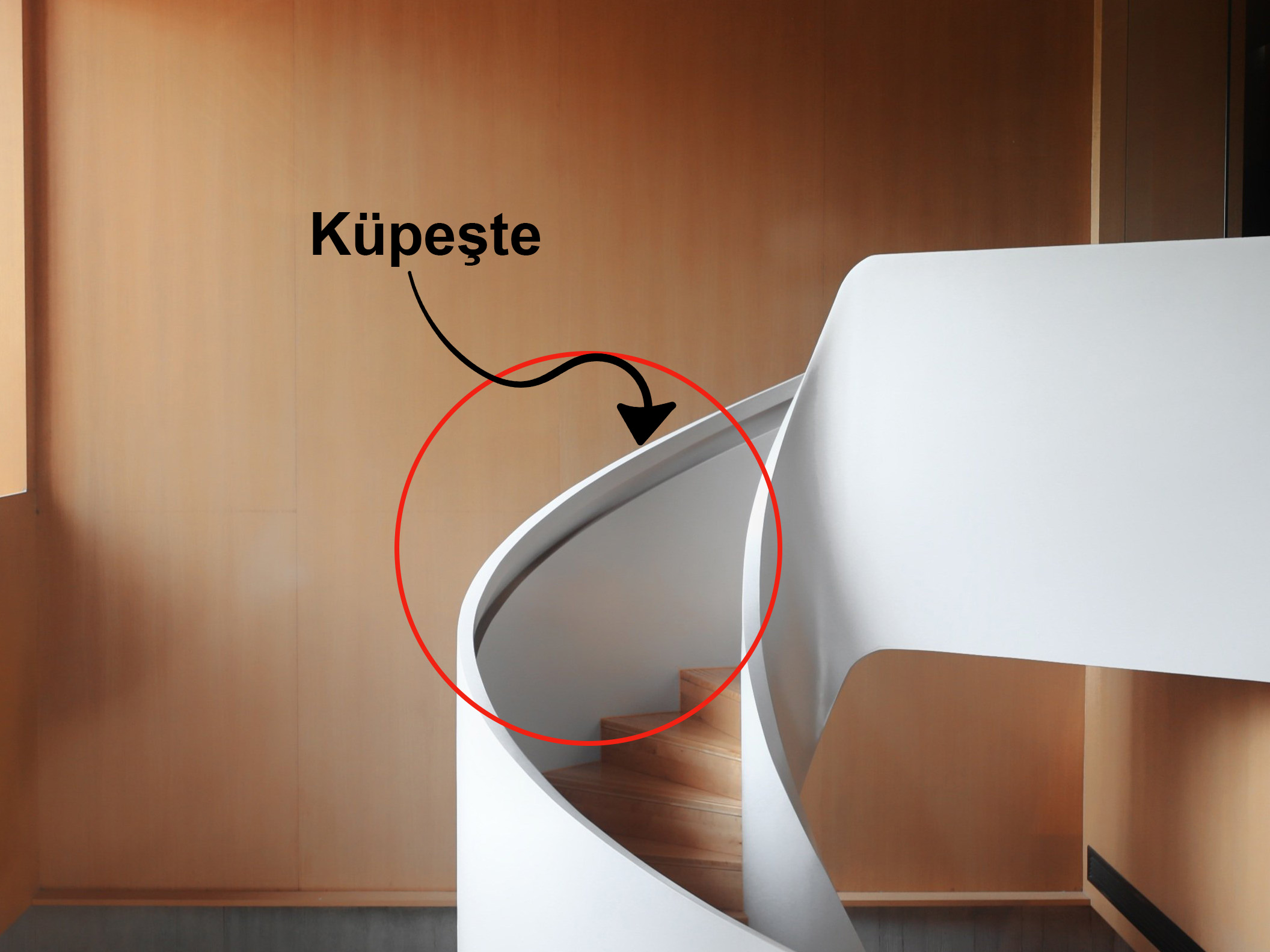 - “Merdivenin küpeşte kısmı ahşap oyma işçiliği ile süslenmişti.”