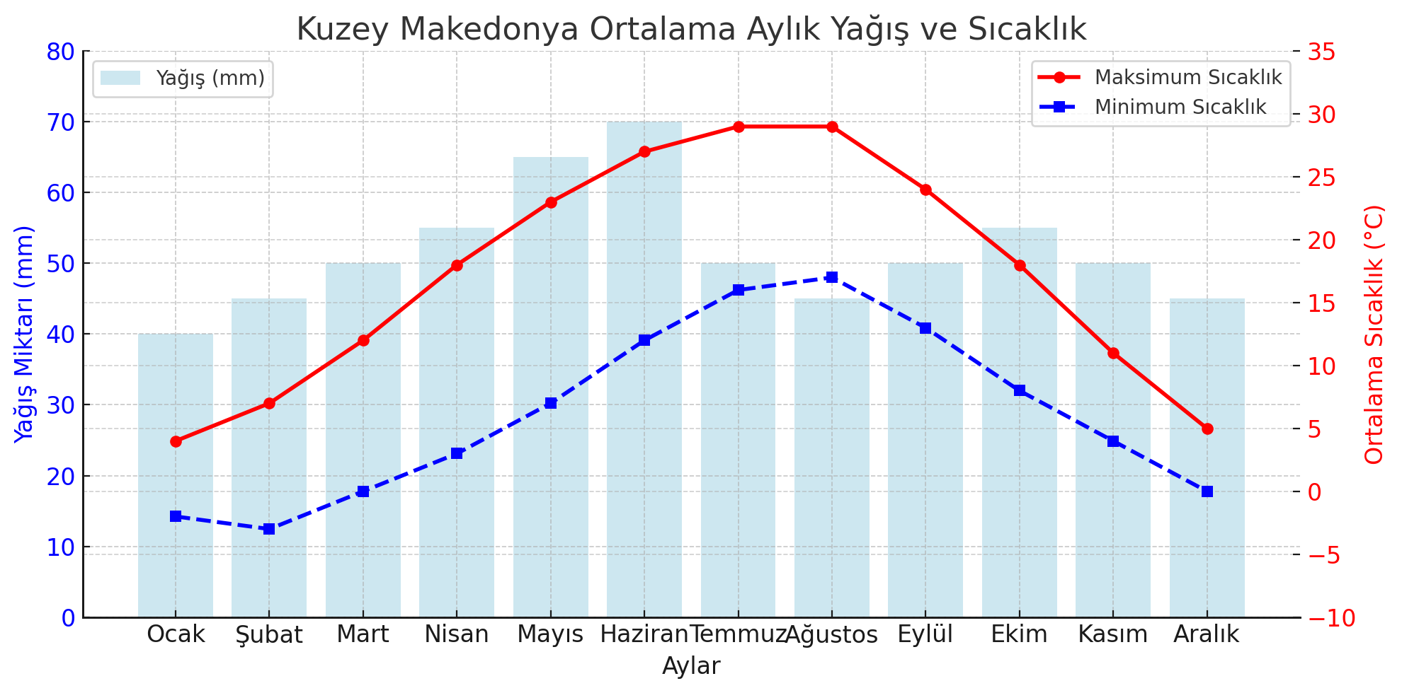 Kuzey Makedonya Ortalama Aylık Yağış ve Sıcaklık Grafiği