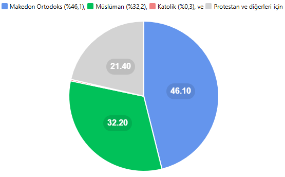 - %46,1’i Makedon Ortodoks Kilisesi’ne bağlı Hristiyandır (büyük çoğunluğu etnik Makedonlardan oluşmaktadır).
