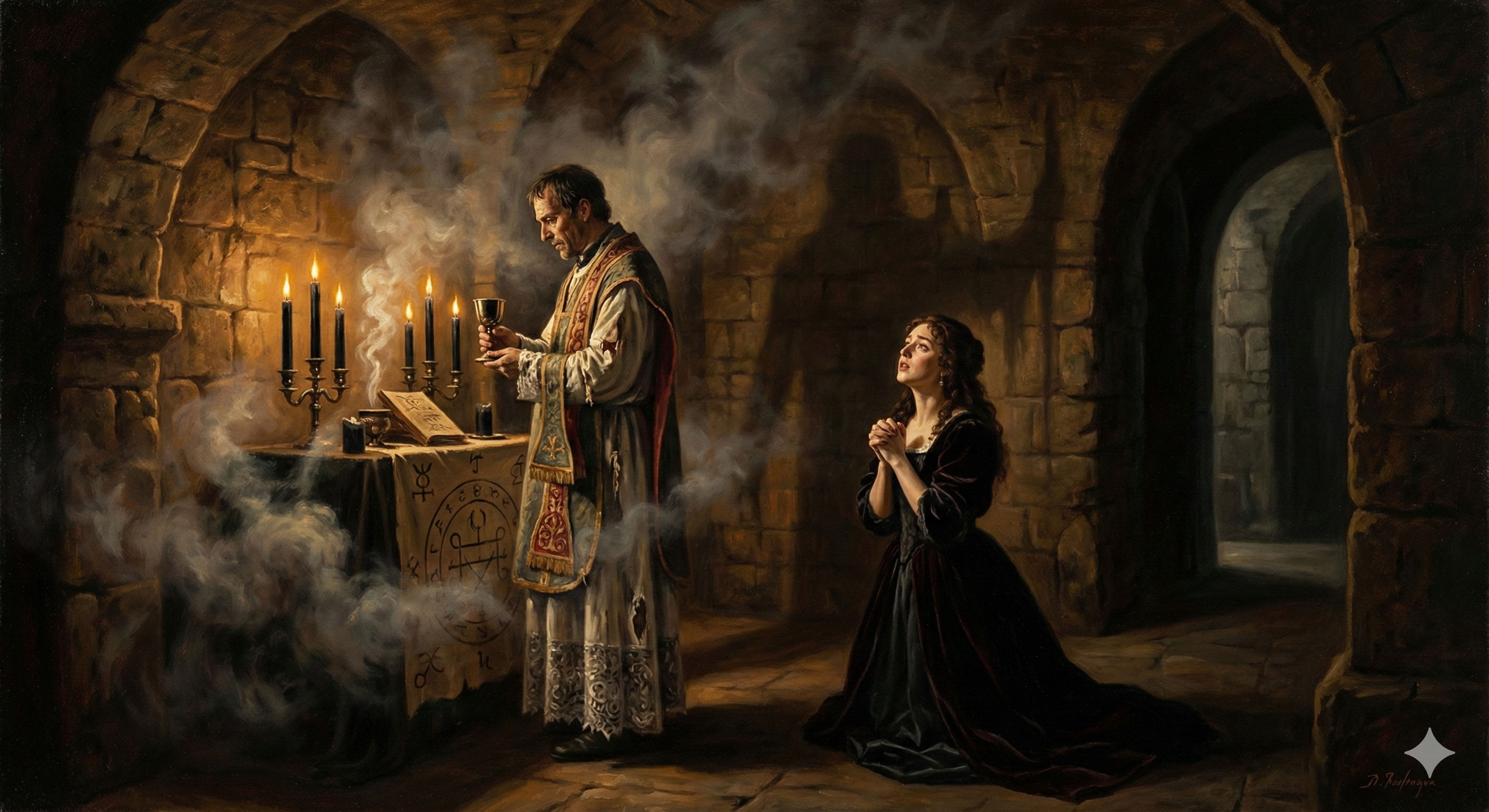 Madame De Montespan'ın Kral'ın Gözüne Girmek Ve Rakiplerini Elemek İçin Katıldığı İddia Edilen "Kara Ayin" Ritüelinin Tasviri (Yapay Zeka İle Oluşturulmuştur)