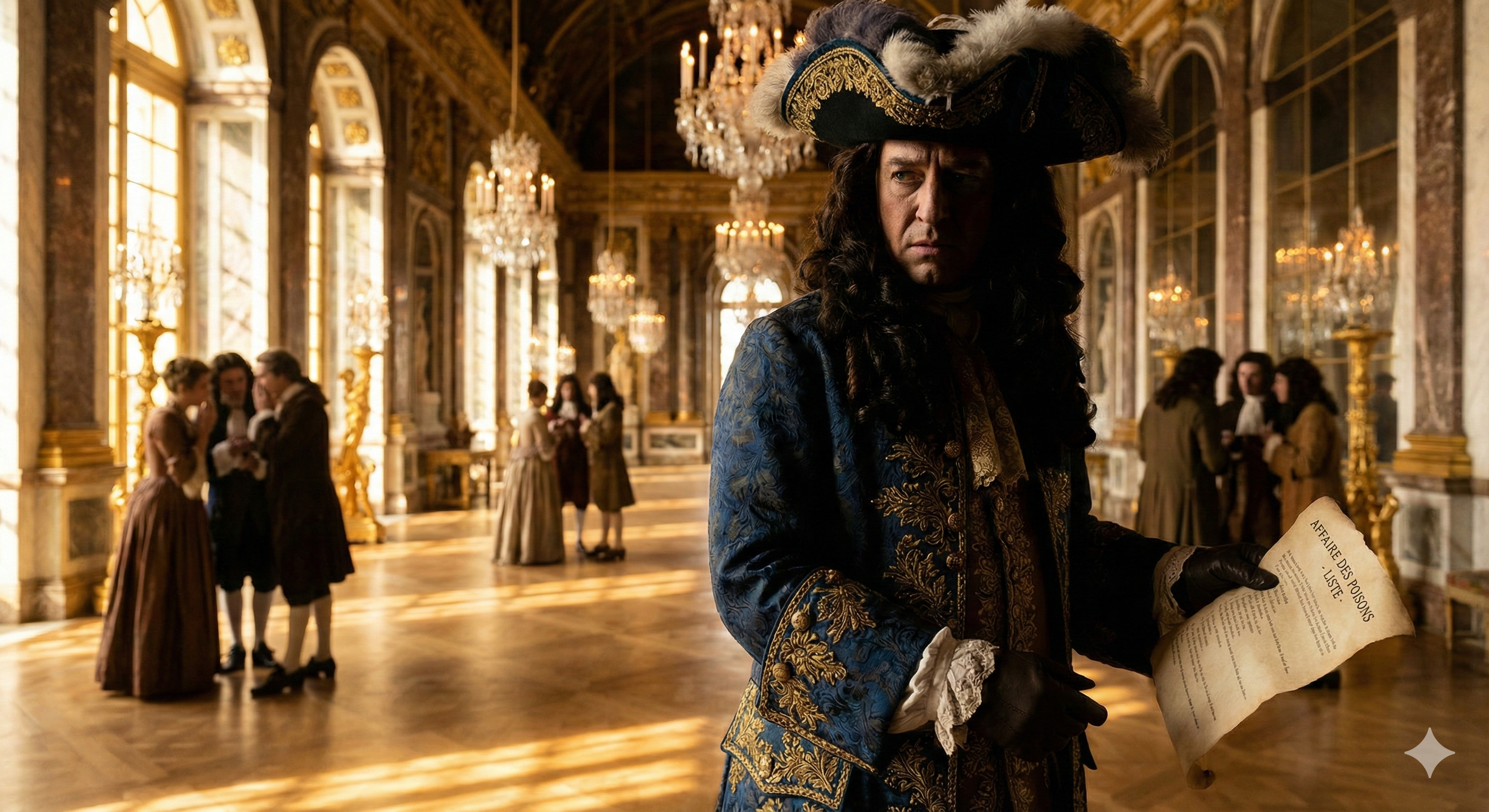 Güneş Kral XIV. Louis'nin Versailles Sarayı'nda Skandalın Kendi Yakın Çevresine Kadar Uzandığını Fark Ettiği An (Yapay Zeka İle Oluşturulmuştur)