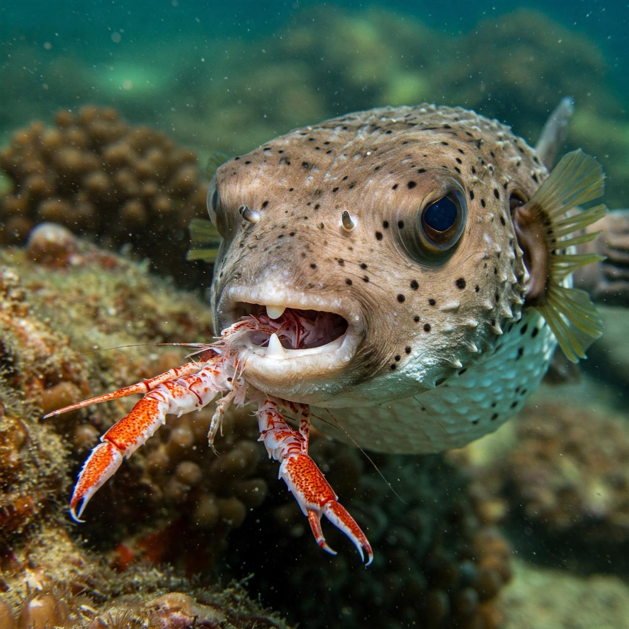 The pufferfish exhibits a generalist feeding strategy. Its diet includes crustaceans, mollusks, small fish, and even conspecifics. This wide dietary range facilitates its easy adaptation to new habitats. Moreover, thanks to its strong jaw structure, it can consume hard-shelled organisms. These traits enable the species to impact local food chains and compete with native species in the ecosystems it inhabits.