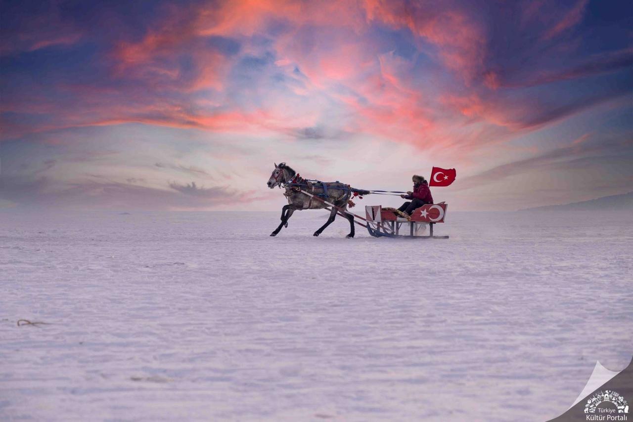 From an ecosystem perspective, Lake Çıldır boasts a rich structure and is home to various fish species, most notably the mirror carp. In the winter months, traditional Eskimo-style fishing is practiced on the lake by breaking the ice for fishing. Additionally, various touristic activities such as horse-drawn sleigh rides, ice skating, and traditional sporting events are carried out on the frozen surface of the lake.