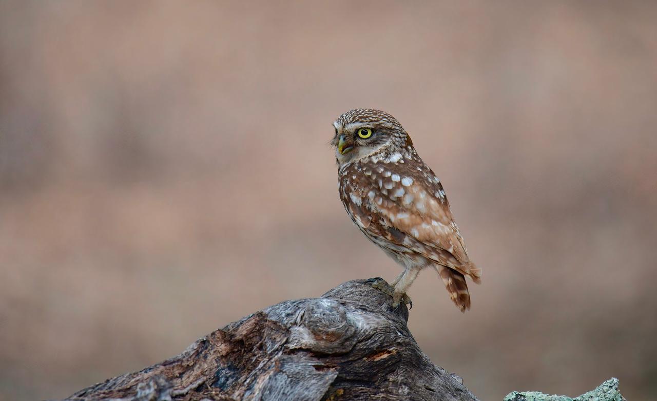 The Little Owl is a small-sized owl species with a round head and relatively long legs. Its feathers are generally in shades of grey and brown, and they may vary in color depending on the climate and geographical features of its habitat. While in the Central Anatolia and Southeastern Anatolia regions, Little Owls tend to exhibit lighter tones, individuals living in forested and wooded areas may be darker in color. Its crown, nape, and wings are adorned with distinct white spots. The yellow eyes, along with the white eyebrow lines and the area around the eyes, are particularly striking. The average body length of the Little Owl is between 21 and 27 cm, with a wingspan varying between 50 and 57 cm, and it weighs between 150 and 200 grams. Although it is generally active during the day as well, it prefers to hunt during twilight and nighttime.