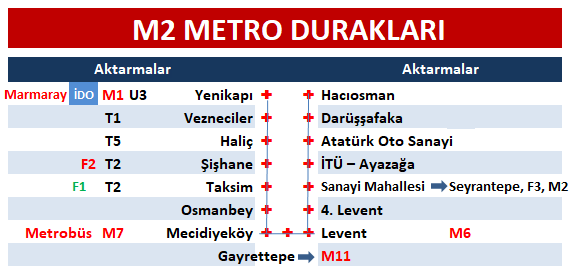 M2 Metro Durakları Aktarma Noktaları (Marmaray İstanbul)