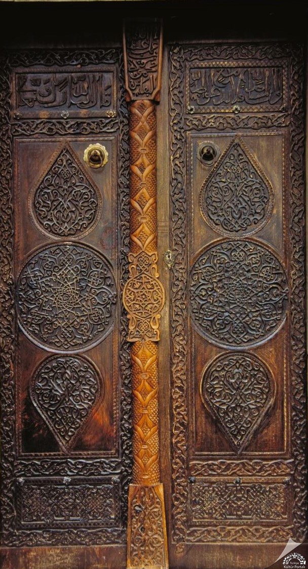 Ankaralı Nakkaş Mahmutoğlu Abdullah tarafından oyma sanatıyla yapılan ahşap giriş kapısı (Kültür Portalı)