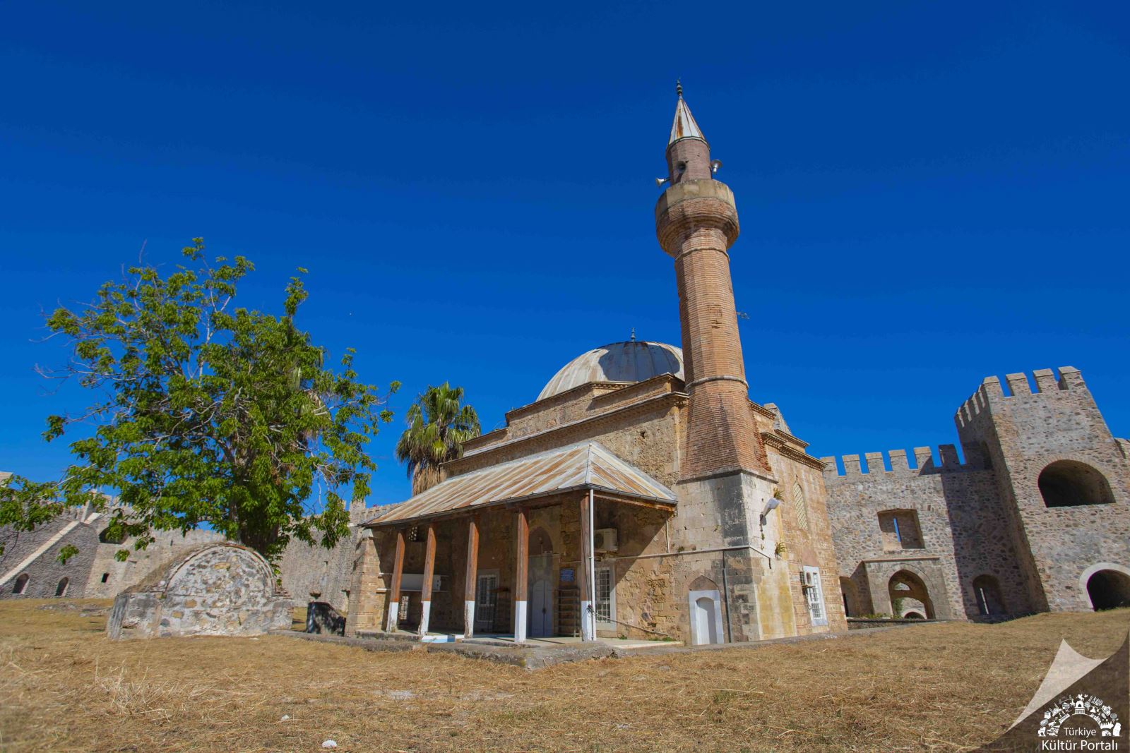 Dış kalede ise merkezi planlı, tek kubbeli bir cami, çeşme, depolar, sarnıçlar ve askerlerin iskân yerleri olduğu düşünülen yapılar yer alır. Caminin ilk yapılışı Karamanoğulları dönemine ait olup, 16. yüzyıl Osmanlı mimarisinin klasik ögelerini taşımaktadır. Kalenin esas giriş kapısı, iç avlunun kuzeyinde, dört köşe planlı iki kule arasında yer alır ve üzerinde altı satırlık bir kitabe bulunur.