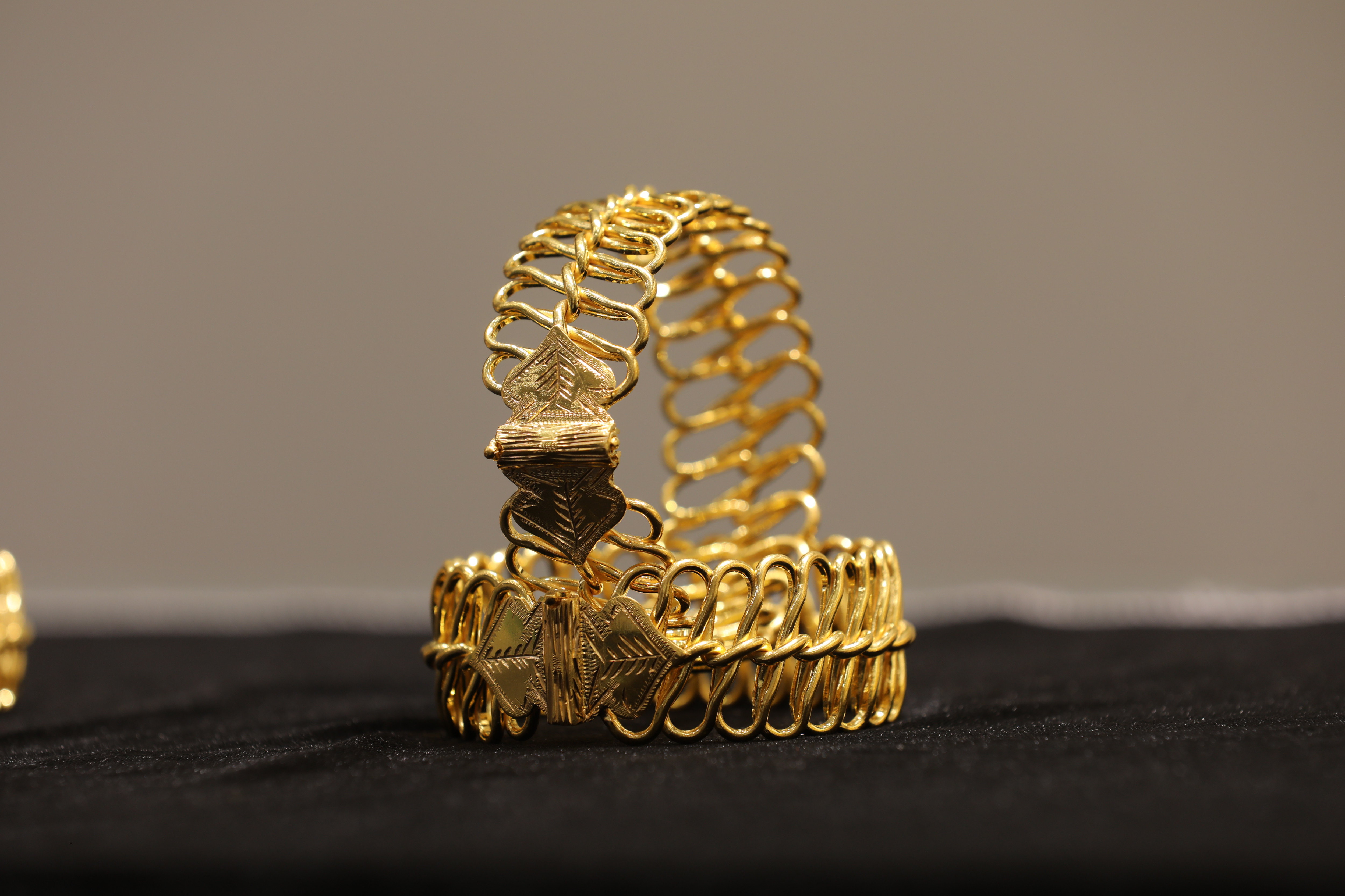 - Örme (Burma İşlemi): Altın teller, özel bir teknikle, mengene ve "inşaat çivisi" gibi yardımcı aletler kullanılarak birbirine örülür (burulur). Bu işlem bileziğin temel formunu oluşturur.