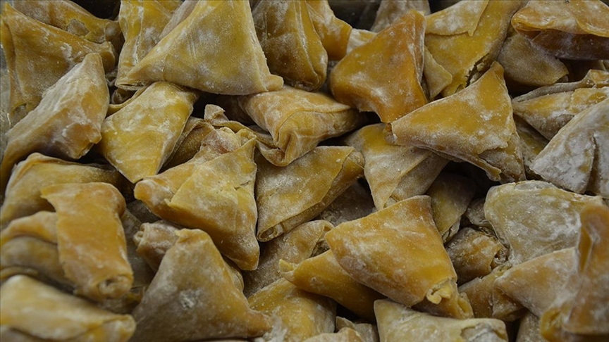 - Hazırlanan samsalar, şekillerini almaları için bir kaba yerleştirilir.