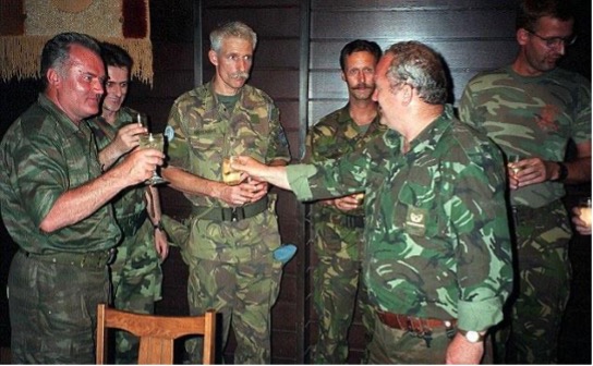 Mladic'in ve Karremans'ın Birlikte Kadeh Kaldırdığı Bir Görüntü. (Anadolu Ajansı)