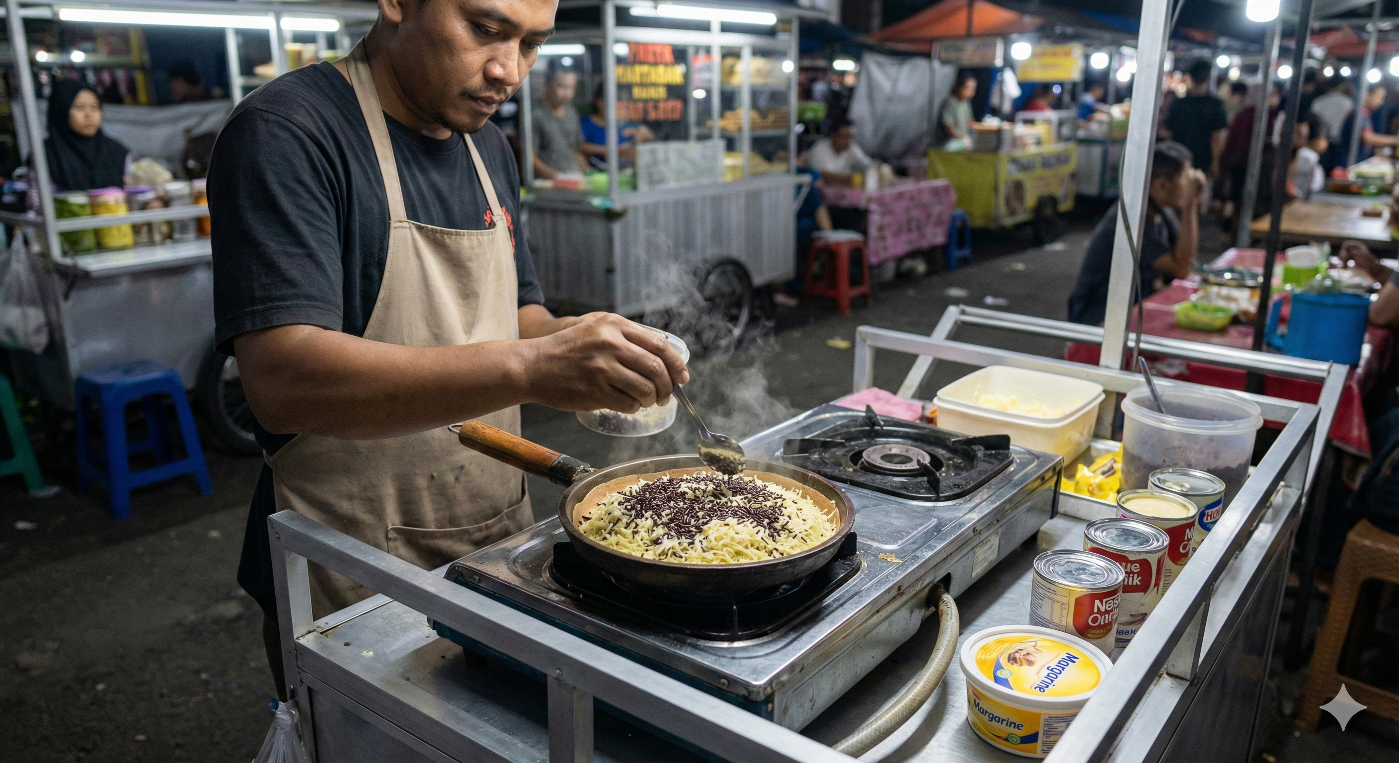 Martabak Manis Hazırlayan Sokak Satıcısı (Yapay Zeka ile Üretilmiştir.)