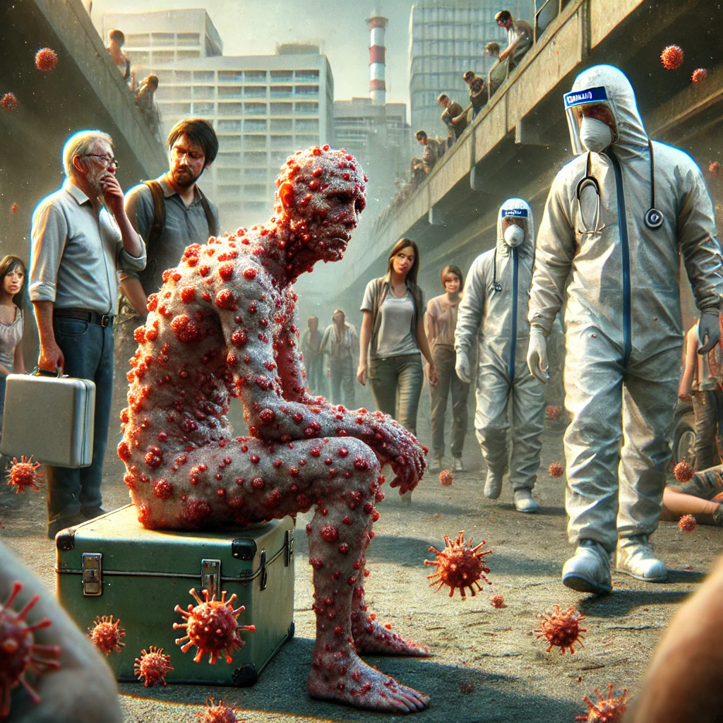 Yapay zeka ile oluşturulmuş maymun çiçeği virüsü salgın görseli