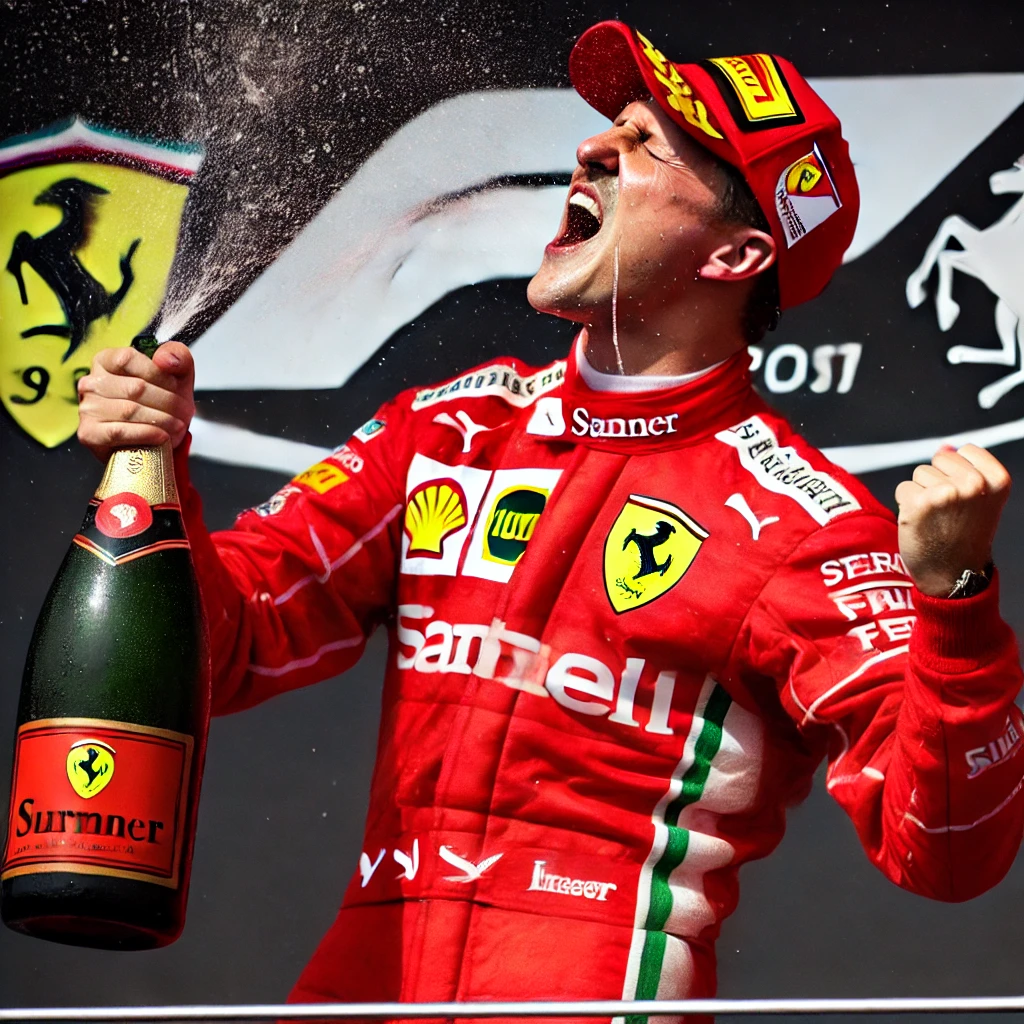 Yapay Zeka İle Oluşturulmuş Ferrari Döneminde Podyumda Zafer Kutlaması Yaptığı An.
