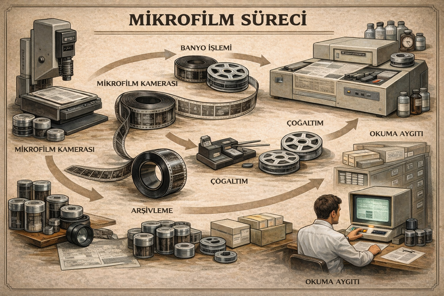 Mikrofilm Üretim ve Kullanım Süreci (Yapay Zeka İle Üretilmiştir)