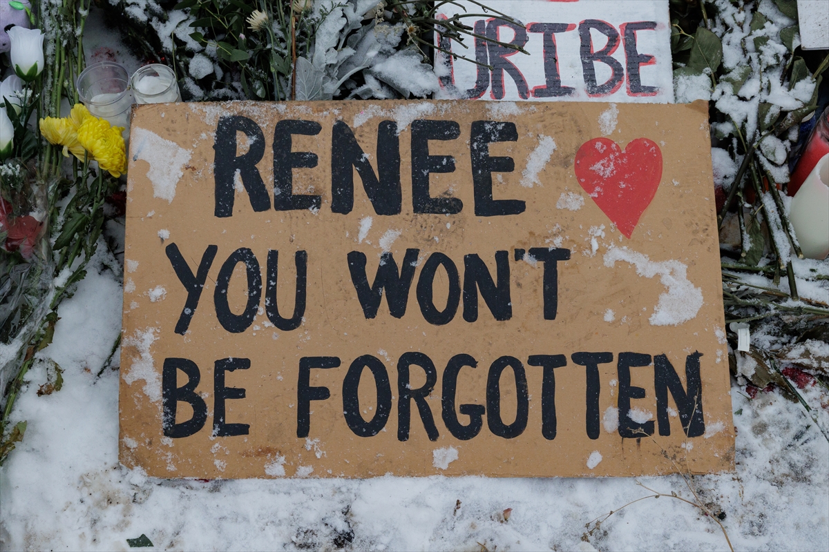 ICE polisince vurularak öldürülen Renee Good için Minneapolis’te oluşturulan anma alanı, 19 Ocak 2026 - (Anadolu Ajansı)