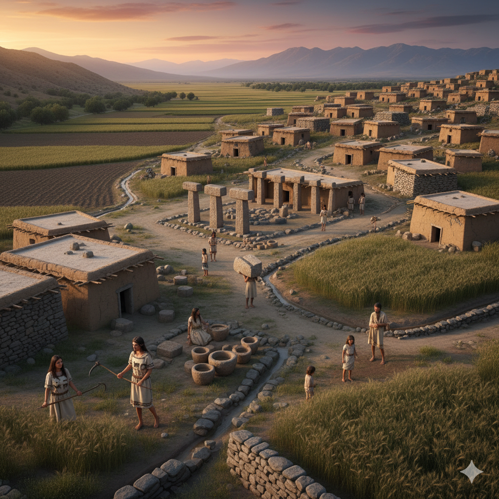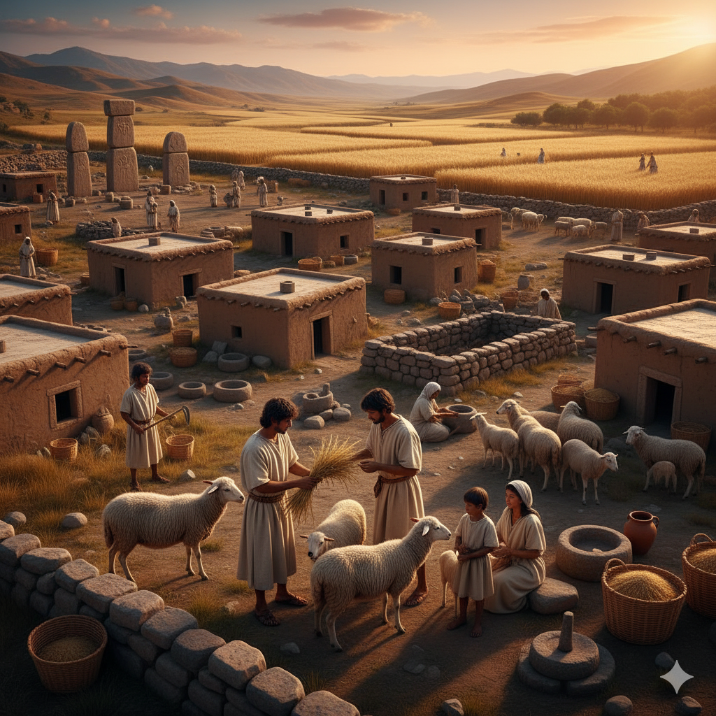 İlk Tarım Köyü ve Yerleşik Yaşamın Başlangıcı (Yapay Zeka İle Oluşturulmuştur)