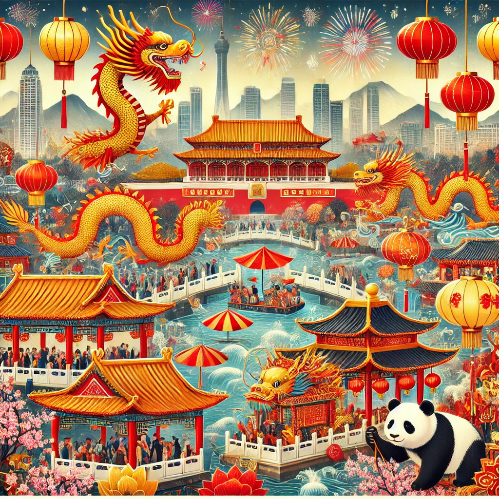 Çin kültürünü tanıtan bir görsel (Yapay zeka ile oluşturulmuştur)