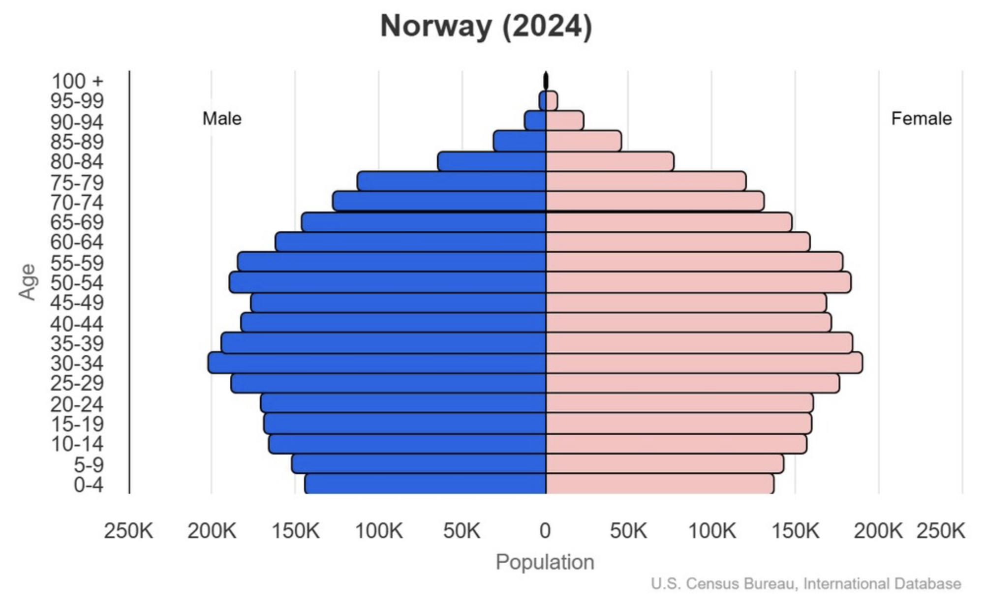 Norveç Nüfus Dağılım Grafiği, 2024. (CIA)