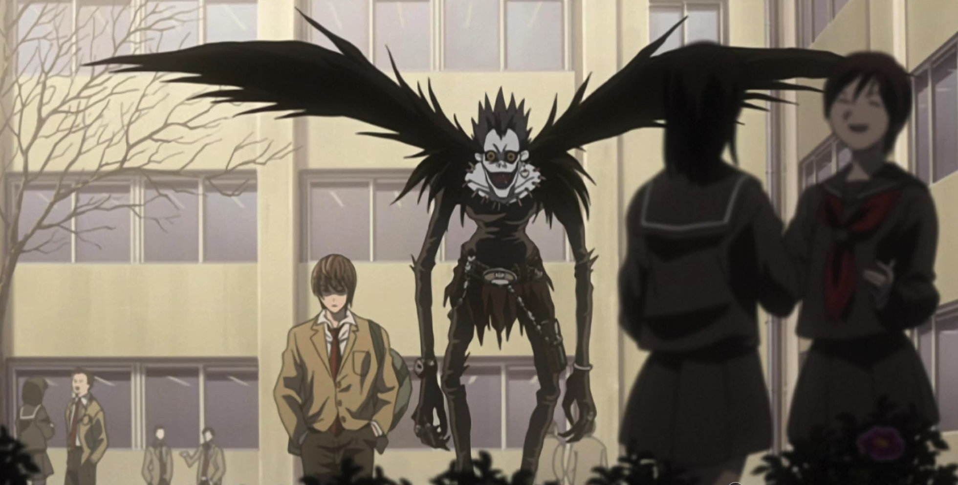 Ryuk | Shidō Nakamura | Ölüm tanrısı (shinigami) Ryuk, defteri canı sıkıldığı için dünyaya düşürür. İnsanlar arasındaki karmaşayı eğlenceli bulur ve olaylara tarafsızca tanıklık eder. |