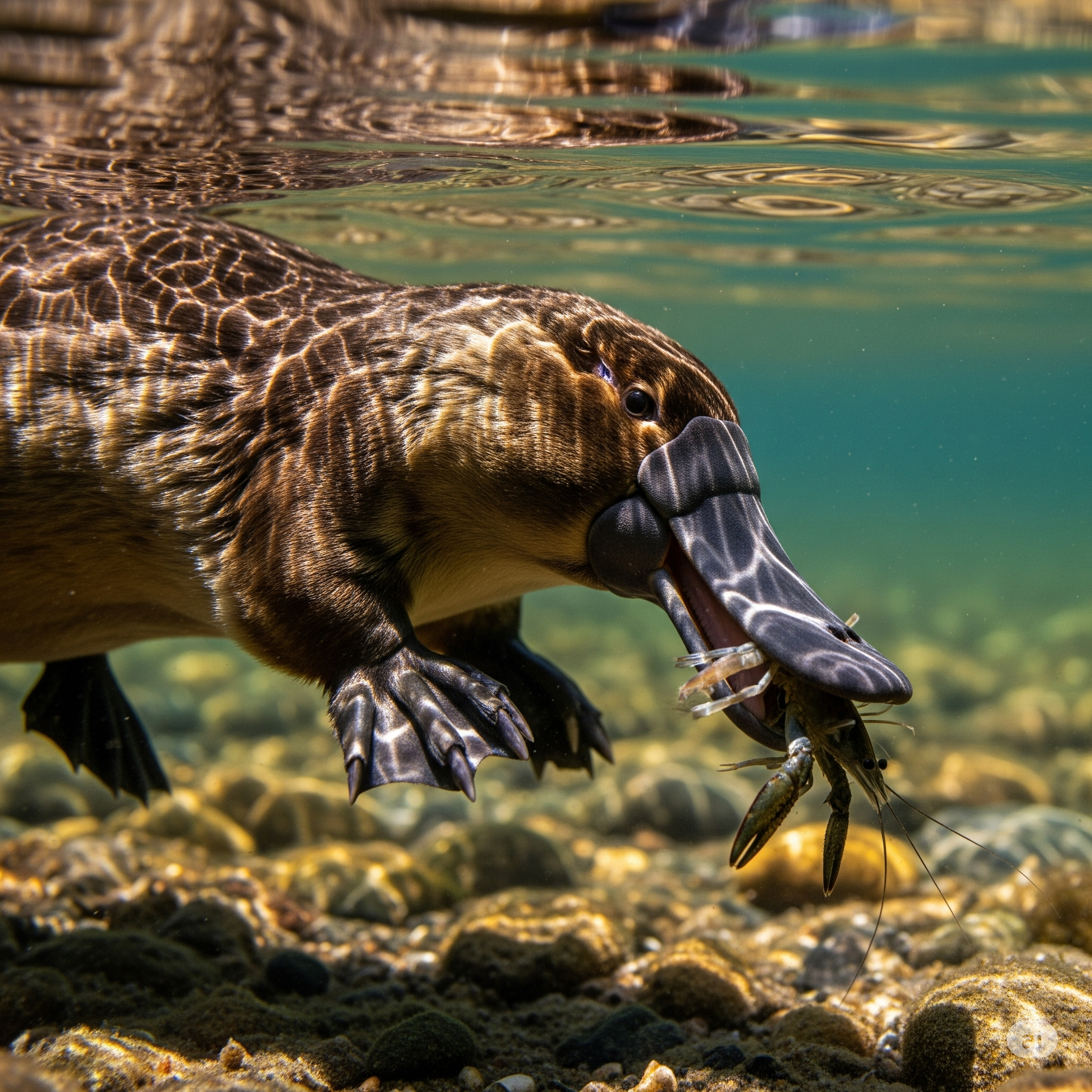 Diyet temel olarak bentik makroomurgasızlar (yengeç larvaları, tatlı su karidesleri, böcek larvaları) ile küçük balık ve tadpikleri içerir. Ornitorenk gece-aktif bir forager olarak toplam aktivitesinin %40’ını su altında geçirir; ortalama dalış süresi 30–90 saniye, yüzey dinlenme aralığı 10–20 saniyedir. Elektro-reseptif avlanma, çamurlu veya bulanık sularda görsel kısıtları telafi eder. Yıllık enerji bütçesi, ısıl izolasyon ve yüzme maliyeti nedeniyle yüksek olup günlük vücut kütlesinin %15–30’u kadar besin tüketimi gerektirir.