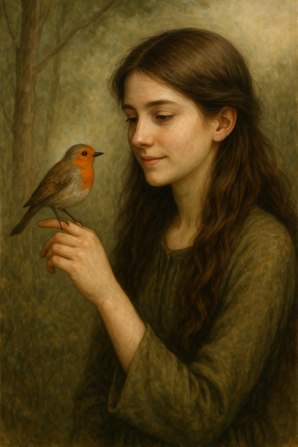 İşte yine ormana gittiği günlerden bir gün, bir kavak ağacının altında yaralı bir Kızılgerdan gördü Aybike. Küçük kuşu eline alıp hep yanında taşıdığı çantasından çıkardığı malzemelerle yarasını sardı. Ona yiyecek ve su verip birkaç gün boyunca evinde misafir etti. Sonunda iyileştiğinde kuşu ormanın sınırına geri götürüp göğe doğru uğurladı. Kuş gökyüzünde birkaç kere çember çizdikten sonra arkasını dönmüş giden Aybike'nin omzuna geri kondu. Aybike gülümseyerek kuşa doğru baktı ve "kalmak mı istiyorsun?" diye sordu. Küçük kuş buna cevap olarak gagasıyla Aybike'nin saçlarını çekiştirmekle yetindi.