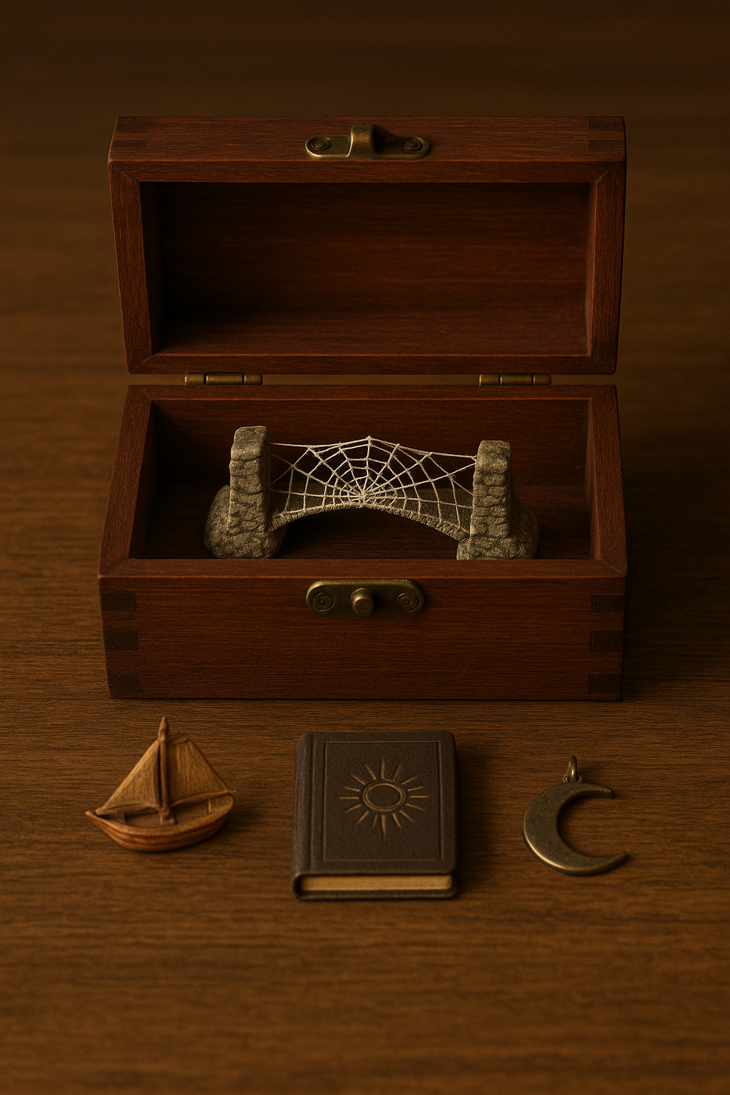 Aksungur, küçük hediye sandığını masaya koydu ve İlbilge'nin gözü önünde açtı. Sandığın içinden küçük, minyatür bir köprü çıktı. Ancak köprünün gövdesi örümcek ağından yapılmıştı. İlbilge şaşkınlıkla;