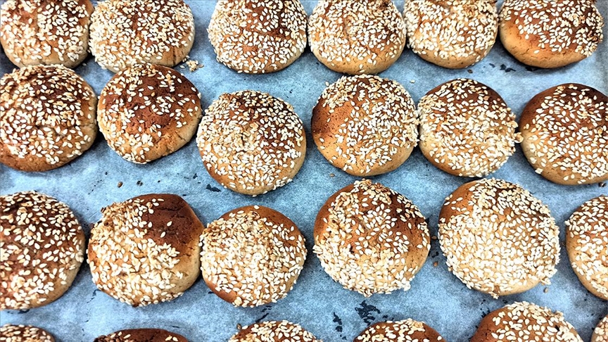 Şekillendirilmiş kömbelerin üzeri ıslatılmış susamla kaplanarak önceden ısıtılmış 170–180 °C fırına verilir. Pişirme süresi yaklaşık 20–25 dakikadır. Ürün fırından çıktığında altın sarısı rengini almış, dışı hafif sert, içi ise kıvamlı bir yapıdadır.