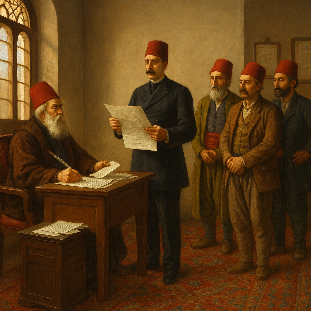 19. Yüzyılda Osmanlı'nın Yeniden İdari Yapılanmasını Temsil Eden Bir Görsel (Yapay Zekâ ile Oluşturulmuştur)