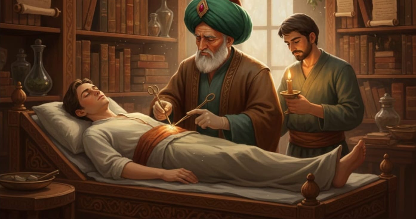 Cerrahi Müdahalede Bulunan Osmanlı Hekimi Temsili (Yapay Zeka Yardımıyla Oluşturulmuştur)