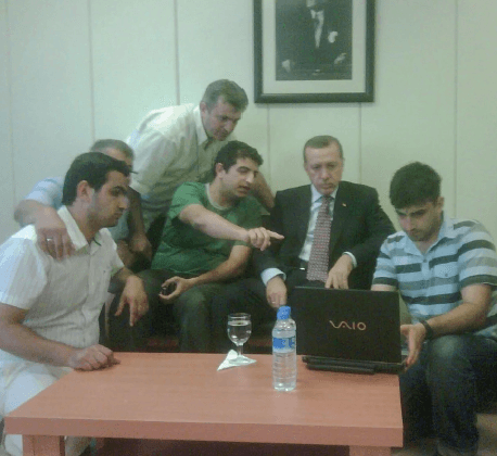 Özdemir Bayraktar’ın Oğulları Ahmet, Selçuk ve Haluk Bayraktar, Dönemin Başbakanı Recep Tayyip Erdoğan’a Sunum Yaparken, 2009. (Özdemir Bayraktar (Özdemir Bayrkatar Bu Dünyadan Bir Akıncı geçti Kitabı)