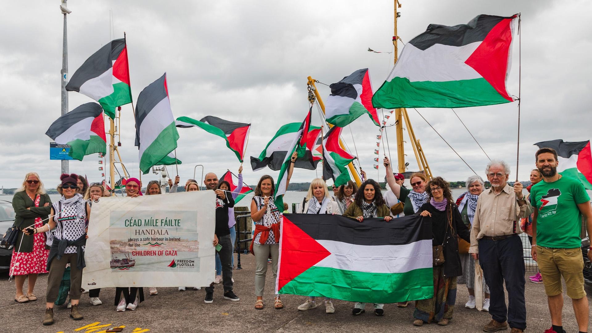 Handala gemisini uğurlayan kişiler, 13 Temmuz 2025 - (Freedom Flotilla)