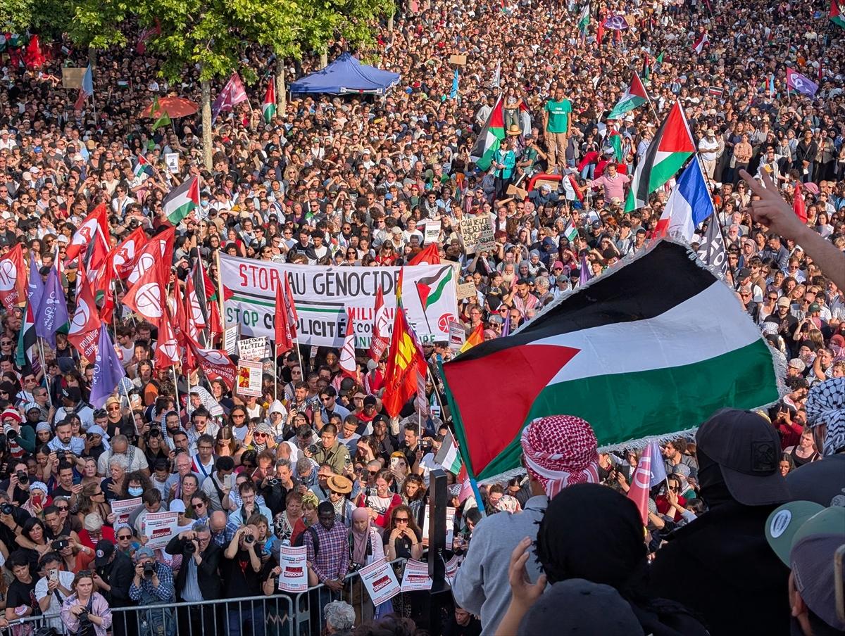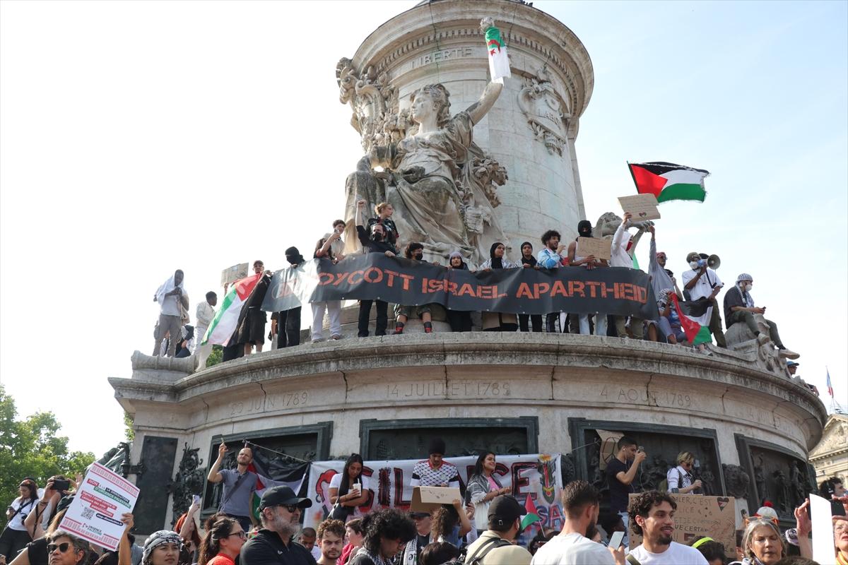 İsrail'in Gazze’ye yardım götüren "Madleen" gemisine saldırısı protesto etmek için Paris'te düzenlenen gösteriler, 9 Haziran 2025 - (Anadolu Ajansı)