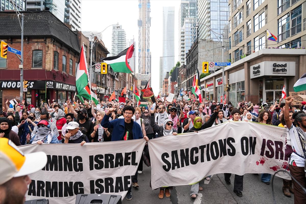İsrail'in Gazze’ye yardım götüren "Madleen" gemisine saldırısı protesto etmek için Toronto'da düzenlenen gösteriler, 10 Haziran 2025 - (Anadolu Ajansı)